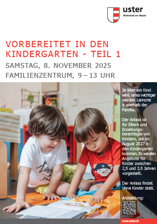 Am 8. November findet der Anlass "Vorbereitet für den Kindergarten" im Familienzentrum statt. Der Anlass ist für Eltern, deren Kinder im August 2027 in den Kindergarten kommen und stellt Angebote für kleine Kinder und deren Eltern vor (Spielgruppen, Kitas, Tagesfamilien, Elternbildung, Mütterväterberatung, Logopädie, Heilpädagogische Früherziehung und das Familienzentrum).